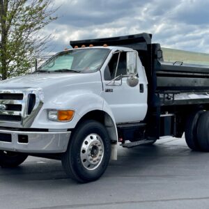 The Ford F750 4x2 10' Ox Bodies dump truck is a robust and efficient option for transporting and unloading materials. Powered by a 335 HP engine and equipped with an automatic transmission, it offers dependable performance and ease of operation. Its factory GVWR of 26,000 lbs eliminates the need for a CDL, broadening accessibility for drivers. The 6-cubic-yard square dump body provides generous capacity for hauling gravel, dirt, or debris, making it perfect for construction, landscaping, and municipal projects.