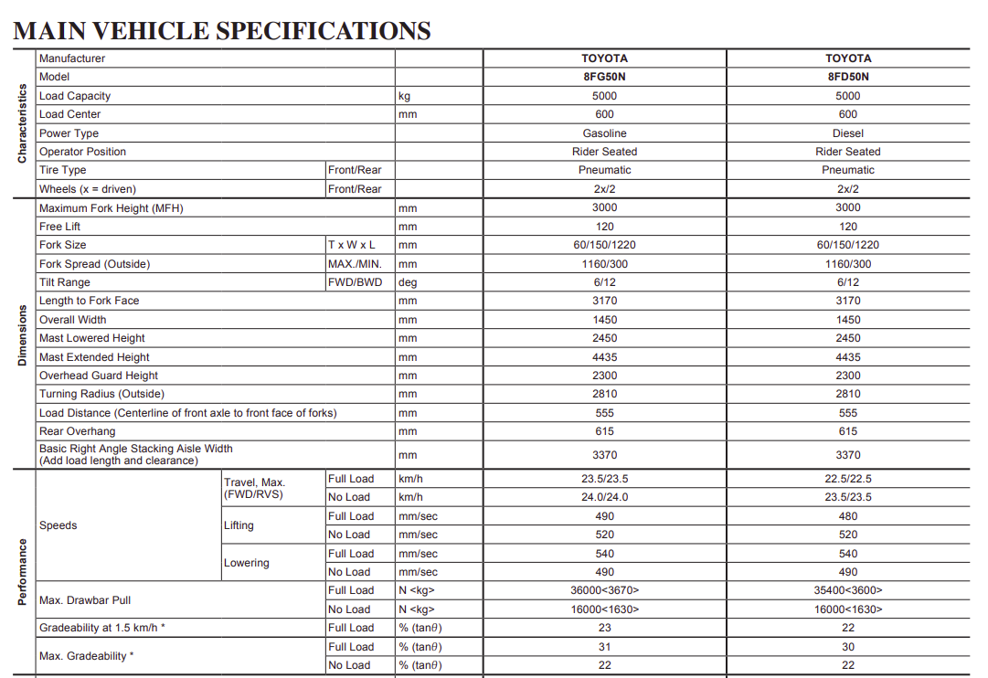 SKU: Toyota-8fd50u Tags: 10000 lb., 10k, Forklift, Industrial Forklift, Straight Mast, Toyota, Warehouse Forklift