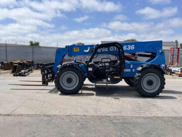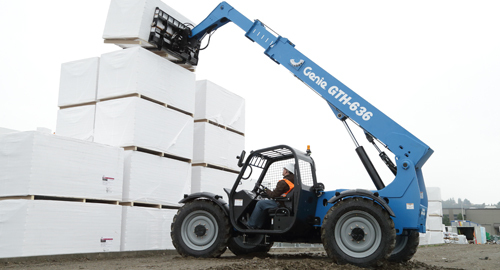 The Genie GTH-636 telehandler features a newly optimized boom and chassis that reduce the machine’s weight, delivering full-sized performance with a lift capacity of 6,000 pounds at an affordable price.