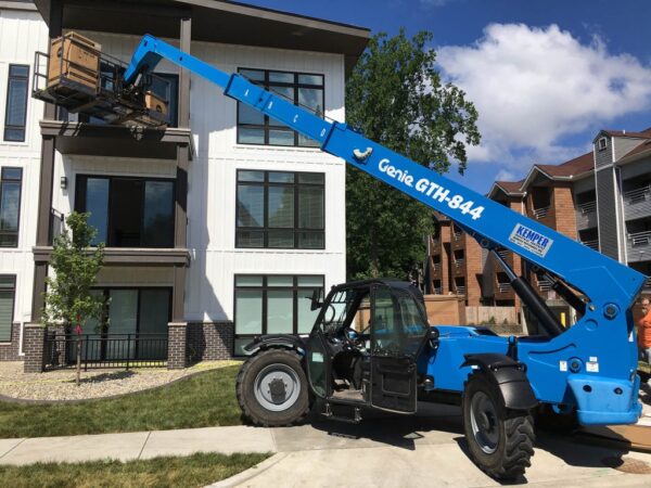 The Genie GTH-844 telehandler, boasting impressive lift capacity, is the perfect machine for loading, unloading, and moving or placing materials across various job sites.