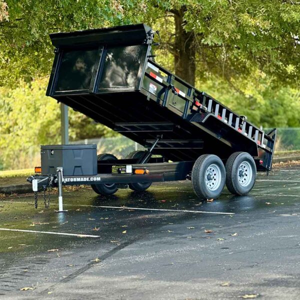 A 12 ft. dump trailer with a 12,000 lb GVWR (Gross Vehicle Weight Rating) is a versatile, open-bed trailer designed for hauling and dumping heavy loads of materials such as gravel, dirt, construction debris, or other bulk materials.