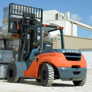 Reliable, sturdy, and designed with ergonomics in focus, the Toyota Pneumatic Forklift is capable of handling a wide range of typical material loads. With a lift capacity of 5,000 lbs, the Toyota Forklift Rentals is the top choice for outdoor material handling needs. It also features high-performance pneumatic tires that ensure a solid grip on uneven terrain. Prepare to tackle your tasks efficiently.